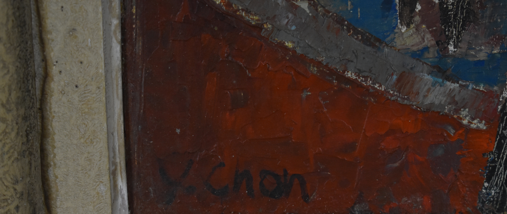 Huile sur toile signée en bas à gauche (traces d’humidité).