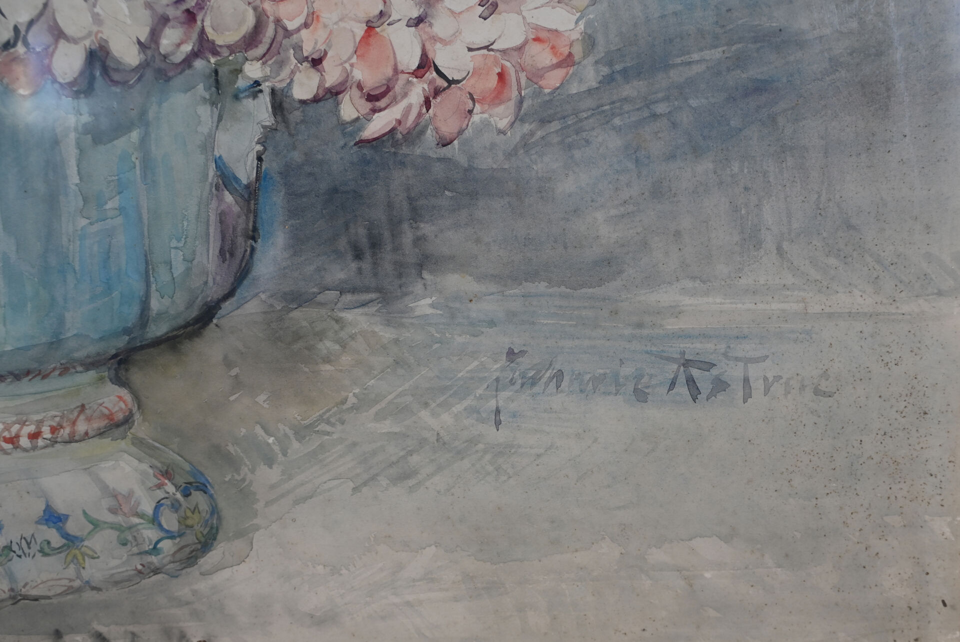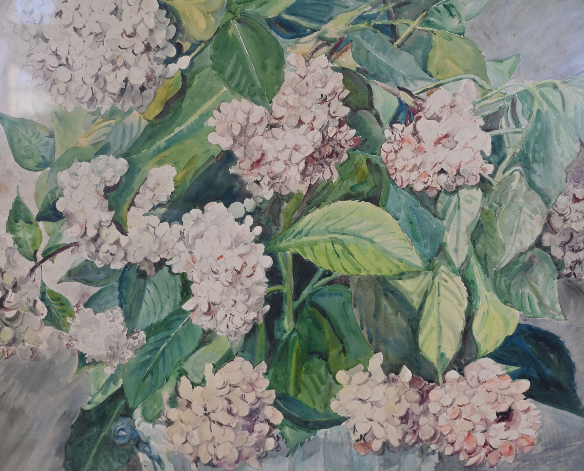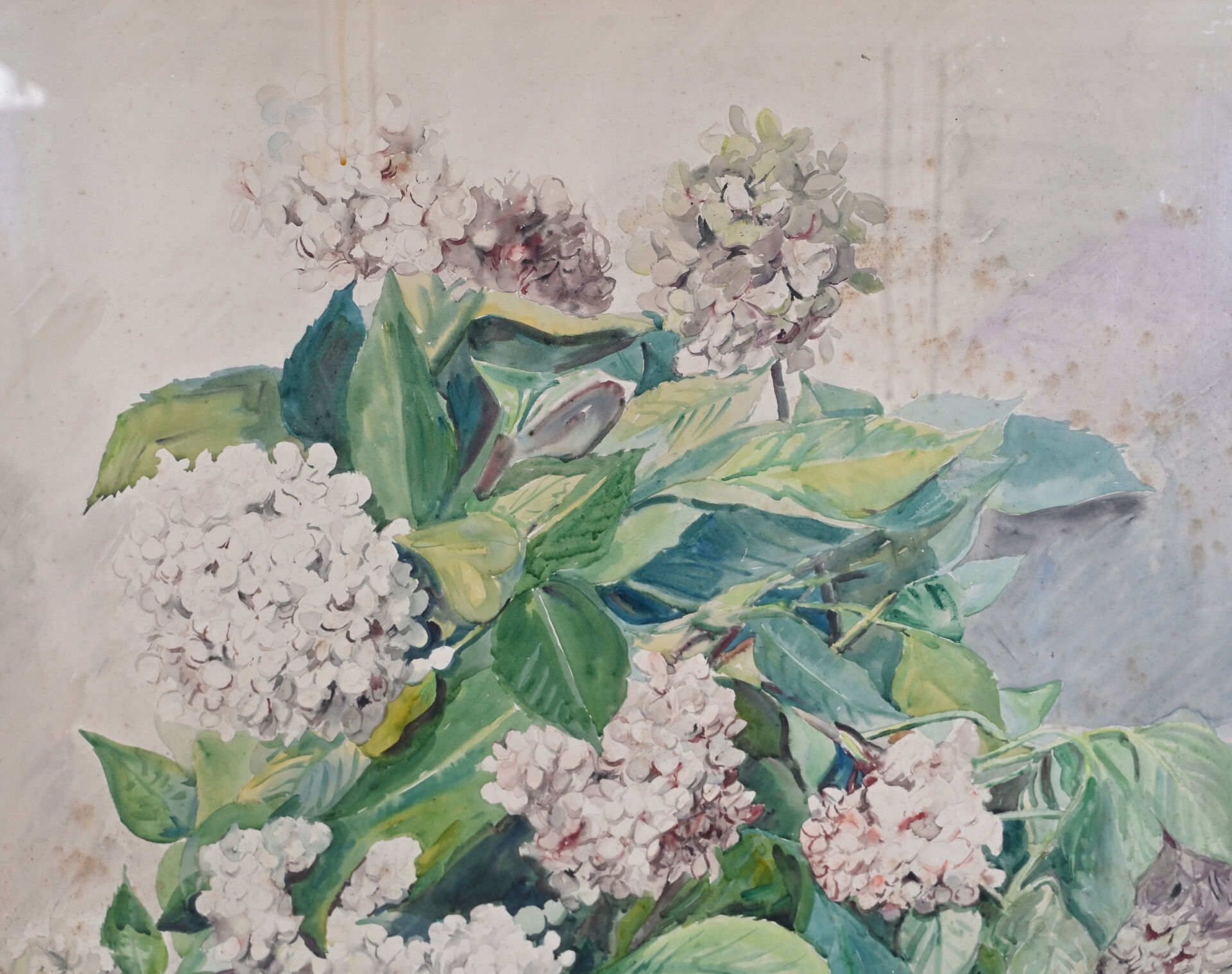 Zacharie ASTRUC (1835-1907) Hortensias. Aquarelle signée en bas à droite (piqures, rousseurs, mouillures). 99 x 75 cm.